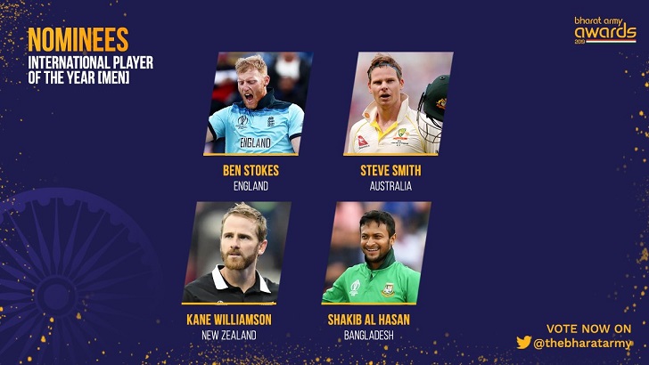 এ তালিকায় সাকিবের সঙ্গে আরো আছেন ইংল্যান্ডকে বিশ্বকাপ জেতানো বেন স্টোকস, অ্যাশেজে অস্ট্রেলিয়ার হয়ে দুর্দান্ত পারফরম করা স্টিভেন স্মিথ এবং সবশেষ বিশ্বকাপের সেরা ক্রিকেটার নিউজিল্যান্ড অধিনায়ক কেন উইলিয়ামসন।
