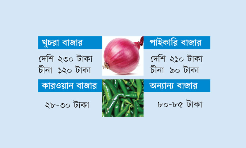 শ্যামবাজারের ব্যবসায়ীরা জানান, আমদানি বাড়ায় চীনের পেঁয়াজের দাম কমেছে। তবে দেশি ও অন্যান্য পেঁয়াজের দাম কমেনি। আর শ্যামবাজারে দেশি কোনো পেঁয়াজ কেনাবেচা হচ্ছে না। কারওয়ান বাজারের পেঁয়াজ ব্যবসায়ীরা বলছেন, দেশি পেঁয়াজের দাম বেশি হওয়ায় ক্রেতাদের আগ্রহ কিছুটা কম। আমদানি করা পেঁয়াজের দাম কম, তাই ক্রেতার আগ্রহ বেশি। আড়তে দেশি পেঁয়াজের জোগান কম।