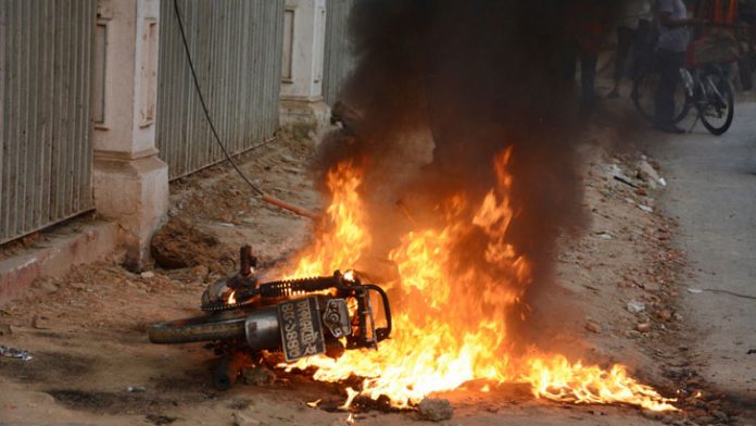 প্রত্যক্ষদর্শীরা জানান, বিকাল সাড়ে ৪টা থেকে পৌনে ৫টার মধ্যে হাইকোর্টের মাজার গেট, ঈদগাহ মাঠের গেট ও বার কাউন্সিলের গেটের সামনে তিনটি মোটরসাইকেলে আগুন দেয়া হয়। আগুনে মোটরসাইকেলগুলো পুড়ে যায়। এ সময় ওই এলাকার মানুষের মধ্যে আতঙ্ক ছড়িয়ে পড়ে।
