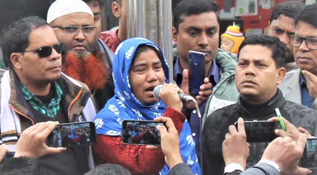 ঠাকুরগাঁওয়ে মেয়ে হত্যার বিচারের দাবিতে রাজপথে এক মা