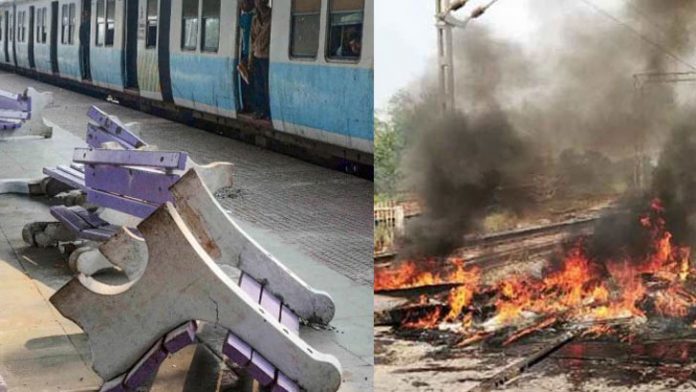 চলমান বিক্ষোভে চলতি মাসে মুর্শিদাবাদে পাঁচটি খালি ট্রেনের কামরা জ্বালিয়ে দিয়েছিল বিক্ষোভকারীরা। সুজনিপাড়া ও মালদার একাধিক স্টেশনেও ভাঙচুর হয়েছে। এছাড়া আসামেও রেলের সম্পত্তি নষ্ট করেছে বিক্ষোভকারীরা।