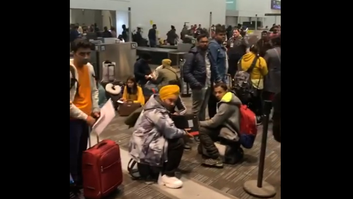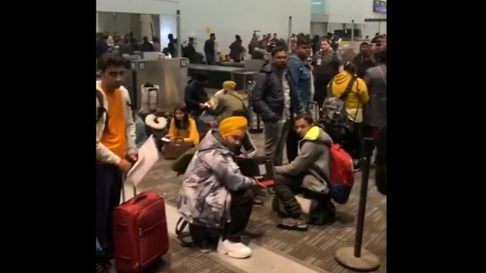 টরন্টো পিয়ারসন ইন্টারন্যাশনাল এয়ারপোর্টে বিমানের অপেক্ষায় ভারতীয় শিক্ষার্থীর্রা। ছবি: ইউটিউব