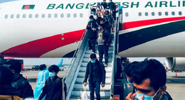 গতকাল সোমবার রাত সাড়ে ৮টায় বিমান বাংলাদেশ এয়ারলাইন্সের ব্যবস্থাপনা পরিচালক ও প্রধান নির্বাহী কর্মকর্তা মো: মোকাব্বির হোসেন নয়া দিগন্তকে বলেন, চীন থেকে সে দিনের ফ্লাইটে যাত্রী নিয়ে দেশে ফেরাদের মধ্যে ছিলেন বিমানের চারজন পাইলট, ১১ জন কেবিন ক্রু এবং পাঁচজন গ্রাউন্ড সার্ভিসের স্টাফ। মোট ২০ জন। তিনি বলেন , আমার একজন পাইলট তার সিমুলেশন ট্রেনিং ছিল সিঙ্গাপুরে। ওই জন্য কালকে (রোববার) ভিসার জন্য গিয়েছিল, তারা চায়না এক্সিট এন্ট্রির সিল দেখে তাকে ভিসা দেয়নি।