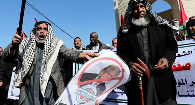 গত ২৮ জানুয়ারি (মঙ্গলবার) প্রেসিডেন্ট ট্রাম্প ইসরাইলের প্রধানমন্ত্রী বেনিয়ামিন নেতানিয়াহুকে সঙ্গে নিয়ে হোয়াইট হাউস থেকে ফিলিস্তিন বিরোধী পরিকল্পনা ‘ডিল অব দ্যা সেঞ্চুরি’ প্রকাশ করেন। ফিলিস্তিনের সমস্ত রাজনৈতিক দল ও সংগঠন, ইরান এবং তুরস্ক সরাসরি ট্রাম্পের পরিকল্পনা প্রত্যাখ্যান করেছে। পার্সটুডে।