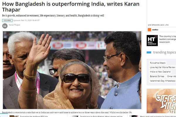 যেসব ক্ষেত্রে বাংলাদেশ এখন ভারতের চেয়ে এগিয়ে তা তুলে ধরেছেন ওই সাংবাদিক। আর এ নিয়ে সংবাদ প্রকাশ করেছে দেশটির জনপ্রিয় দৈনিক ‘হিন্দুস্তান টাইমস’।