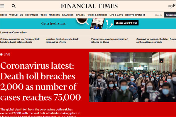 করোনা ভাইরাসে চীনে মৃতের সংখ্যা বেড়ে দুই হাজার ছাড়িয়েছে। এছাড়া বিশ্বে ভাইরাসটিতে আক্রান্ত হয়েছেন প্রায় ৭৫ হাজার জন। নতুন করে আক্রান্ত হয়েছেন ১ হাজার ৮৬৮ জন। এরমধ্যে হুবেই প্রদেশে নতুন করে আক্রান্তদের মধ্যে মৃত্যু হয়েছে ১৩২ জনের। খবর ফিনালসিয়াল টাইমস’র।