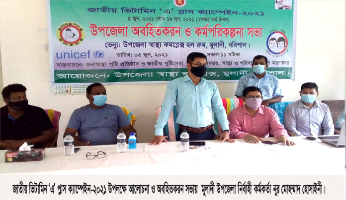 জাতীয় ভিটামিন ‘এ’ প্লাস ক্যাম্পেইন-২০২১ উপলক্ষে অবহিত করন ও কর্মপরিকল্পনা সভা ৬ই জুন বুধবার ১১টায় মুলাদী উপজেলা স্বাস্থ কমপ্লেক্্রের হল রুমে পঃ পঃ কর্মকর্তা ডাঃ সাইয়েদুর রহমানের সভাপতিত্বে অনুষ্ঠিত হয়েছে।