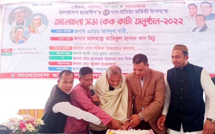 মুলাদীতে উদযাপিত হয়েছে ঐতিহ্যবাহী বাংলাদেশ ছাত্রলীগের ৭৪ তম প্রতিষ্ঠাবার্ষিকী। উপমহাদেশের প্রাচীন এ সংগঠনের প্রতিষ্ঠা বাষীর্কি উপলক্ষে মুলাদী উপজেলা ছাত্রলীগের আয়োজনে হাজার বছরের শেষ্ঠ বাঙ্গালি জাতির জনক বঙ্গবন্ধু শেখ মুজিবুর রহমানের প্রতিকৃতিত্তে ফুল দিয়ে শ্রদ্ধার মধ্যে দিয়ে, সকাল ১১টায় মুলাদী সরকারী কলেজ মাঠে ছাত্রলীগের সভাপতি জুবায়ের আহম্মেদ জুয়েলের সভাপতিত্বে ও মুলাদী পৌর ছাত্রলীগের সাধারন সম্পাদক জুয়েল হাওলাদারের পরিচালনায় আলোচনা সভা ও কেঁক কাঁটা অনুষ্ঠানের আয়োজন করা হয়।