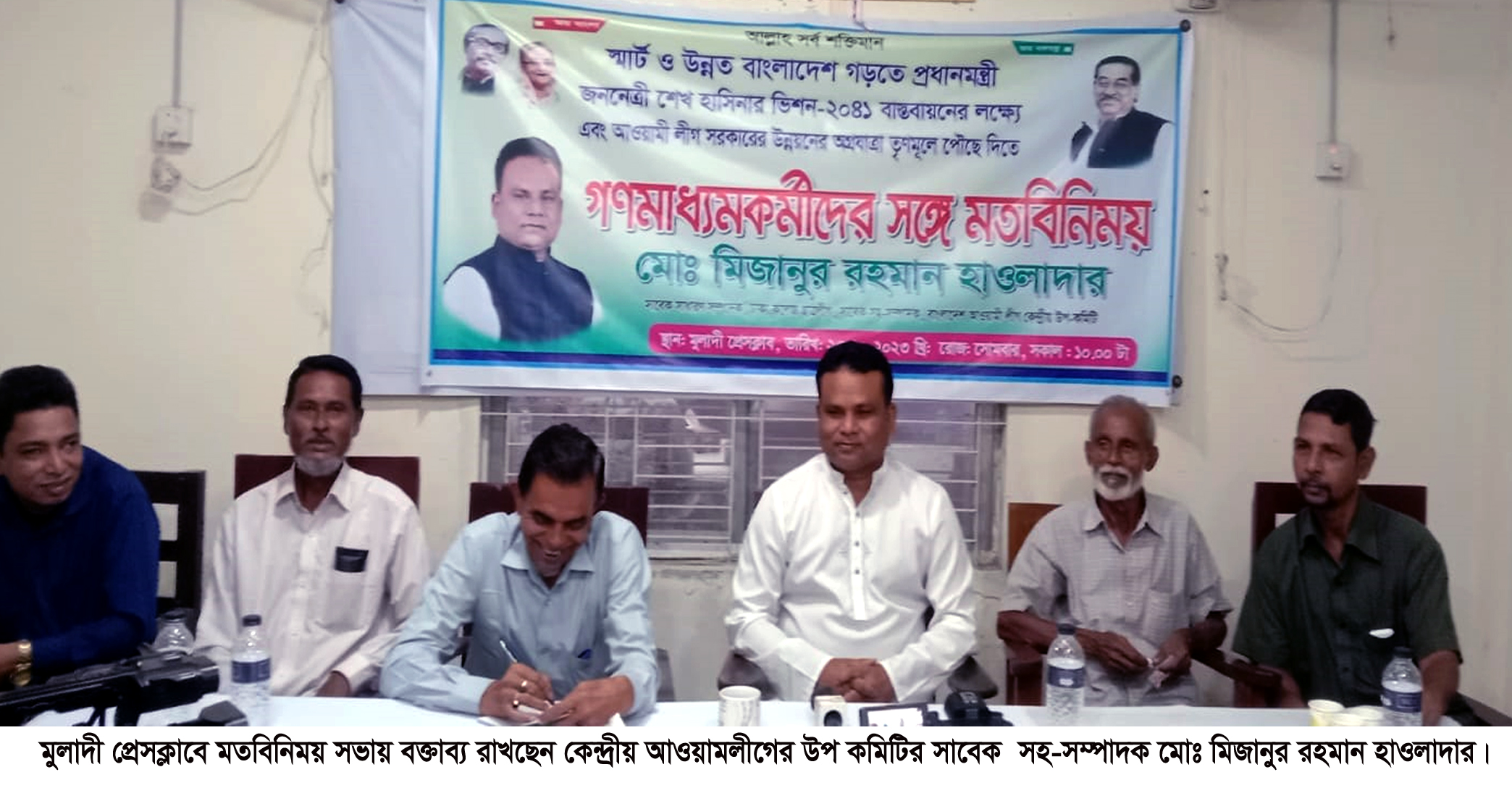 মুলাদীতে আ’লীগ সরকারের উন্নয়নের অগ্রযাত্রা,স্মাট বাংলাদেশ বিনির্নিমানে প্রধান মন্ত্রী জননেত্রী শেখ হাসিনার কথা মানুষের কাছে পৌছে দিতে মুলাদী প্রেস ক্লাবের শাহজাহা মাহমুদ হল রুমে বেলা ১০টায় সাংবাদিকদের সাথে এক মতবিনিময় সভা অনুষ্ঠিত হয়।