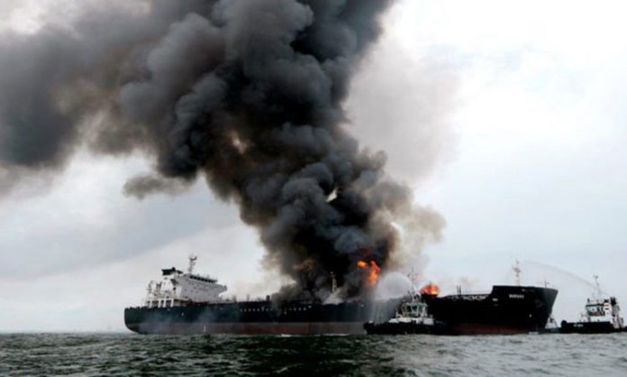 ইরানের ন্যাশনাল ইরানিয়ান ট্যাংকার কোম্পানির (এনআইটিসি) এক বিবৃতিতে বলা হয়েছে সউদী আরবের বন্দরনগরী জেদ্দা উপকূলে সিনোপা নামের ট্যাংকারটিতে দুটি আলাদা বিস্ফোরণ ঘটে। সম্ভবত ক্ষেপণাস্ত্র হামলার কারণে এই বিস্ফোরণ ঘটেছে বলে দাবি করা হয় বিবৃতিতে। এতে ট্যাংকারটি মারাত্মক ক্ষতিগ্রস্থ হয়ে সাগরে তেল চুইয়ে পড়ছে বলে জানিয়েছে ইরানের বার্তা সংস্থা আইএসএনএ। দেশটির বার্তা সংস্থা  নুর জানিয়েছে, ট্যাংকারের সকল কর্মী নিরাপদ রয়েছে আর ট্যাংকারের অবস্থাও এখন স্থিতিশীল।