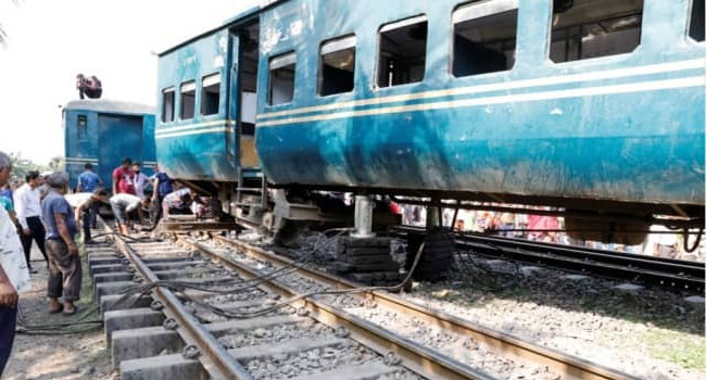 ময়মনসিংহ-কিশোরগঞ্জ রুটের নীলগঞ্জ মহিনন্দা ভদ্রপাড়া এলাকায় শনিবার সকালে একটি মালবাহী ট্রেনের দুটি বগি লাইনচ্যুত হয়ে যাওয়ায় ট্রেন চলাচল বন্ধ হয়ে যায়।