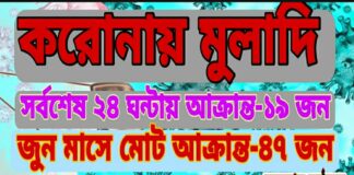 মুলাদীতে করোনা আতংকঃ ২৪ ঘণ্টায় রেকর্ড সনাক্ত ১৯