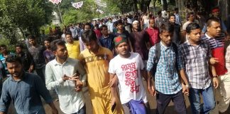 ‘আমার নদী ফিরিয়ে দে, নইলে গদি ছেড়ে দে’ মিছিল-স্লোগানে মুখরিত ক্যাম্পাস