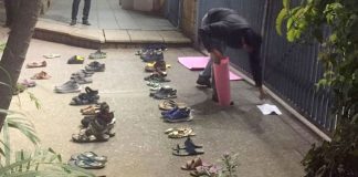 সমাবেশ নিষিদ্ধ, প্রতিবাদে সারি সারি জুতার মিছিল